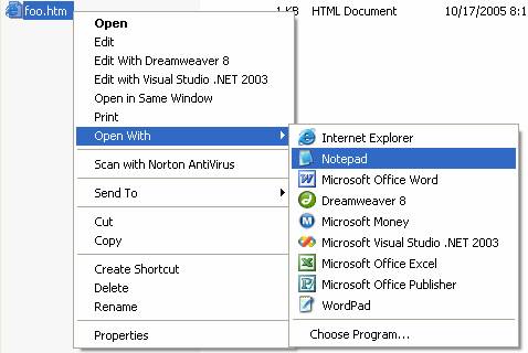If you close Notepad and need to edit the HTML document again you can’t just double click on it because that will just open the browser again. Instead, right click on the document and choose “Open With” and then “Notepad”: