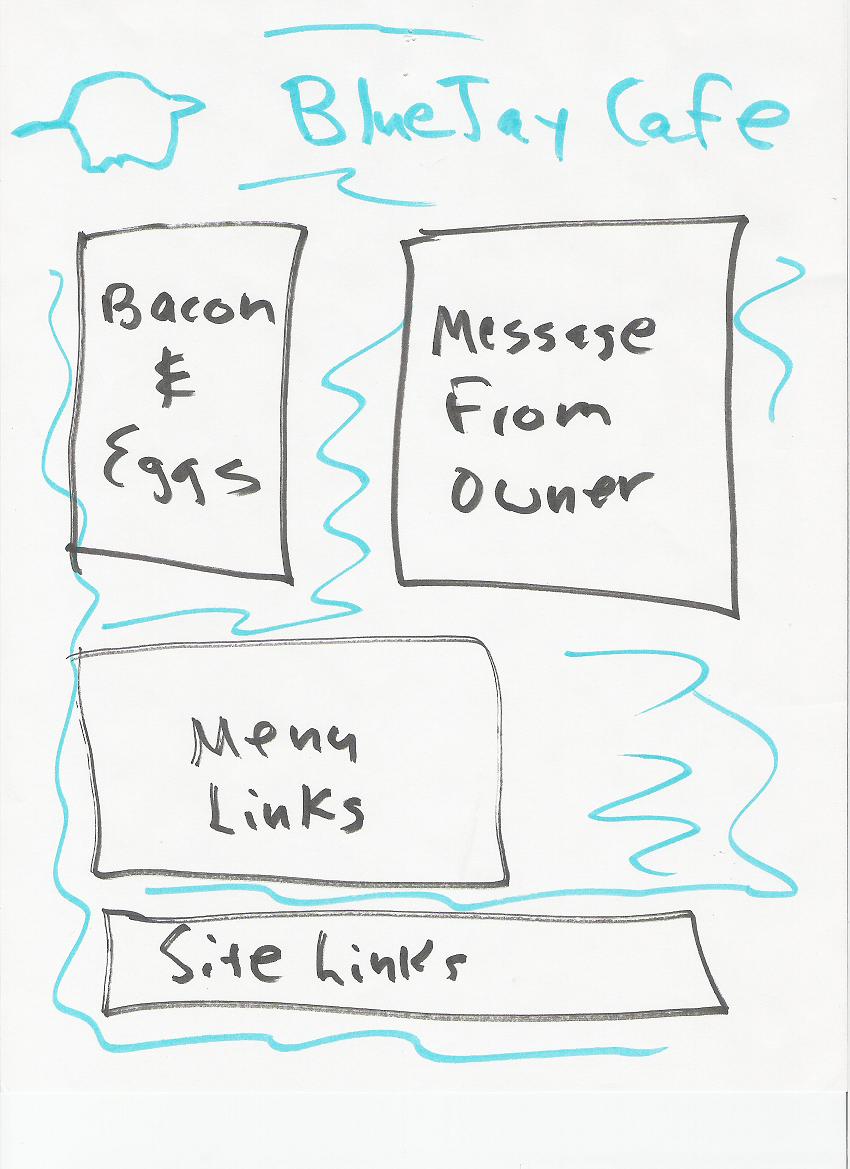 Contrast that with the nice looking web page I made for the Blue Jay Cafe based on this paper layout. Having a plan really helps!