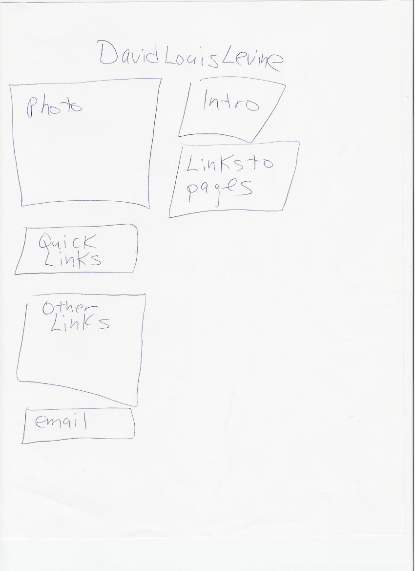 You need to know what your web site is going to look like before you start making it. Otherwise, you might wind up with something as ugly as my own home page. Take a look at this layout for it. Notice all the boxes labels "links". There isn't any overall plan that makes sense.
