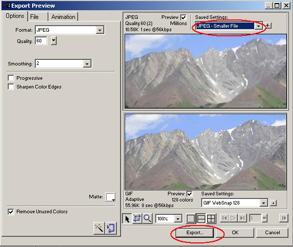 If you have a GIF, BMP, or PNG file you can make it smaller by converting it to a JPG file. To convert the file, open it in Fireworks and use the Export Wizard as described below.