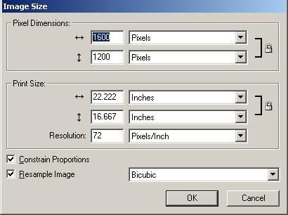 b. Change the horizontal size from 1600 pixels to 400 pixels. Notice
