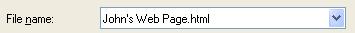 Enter a file name that ends with the characters .html. Include the period before the "h". For example, John's Web Page.html as shown: